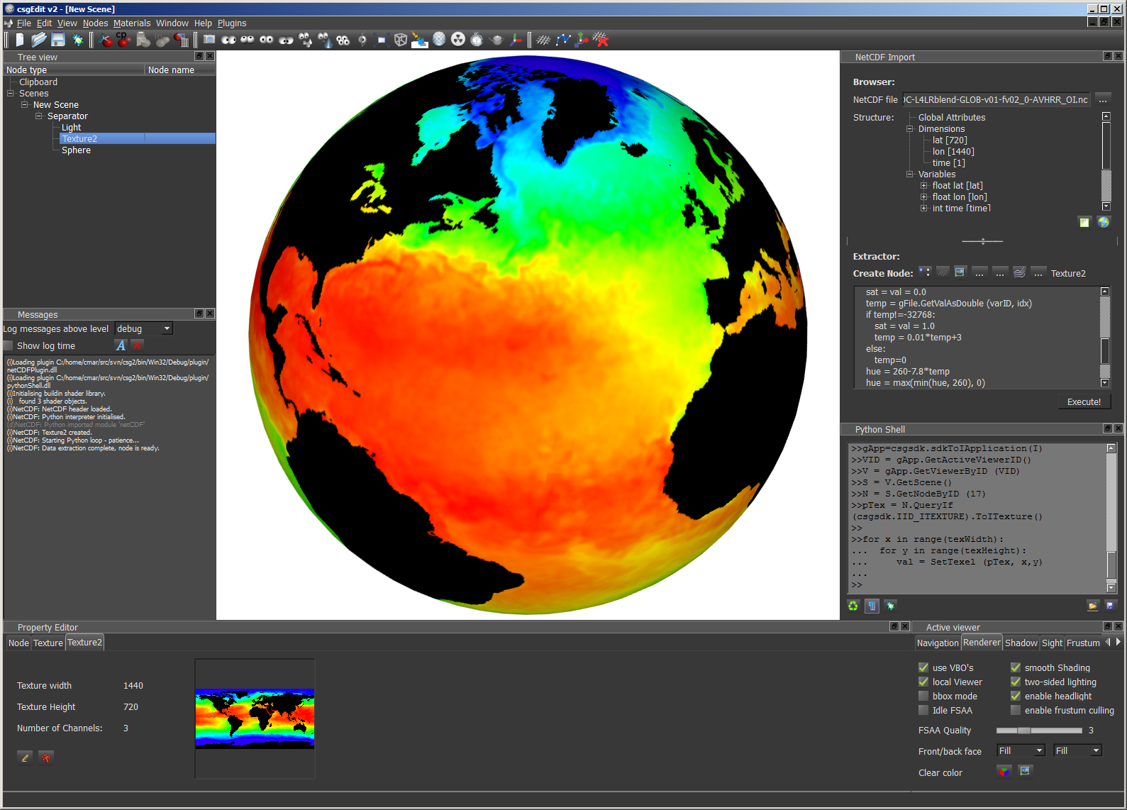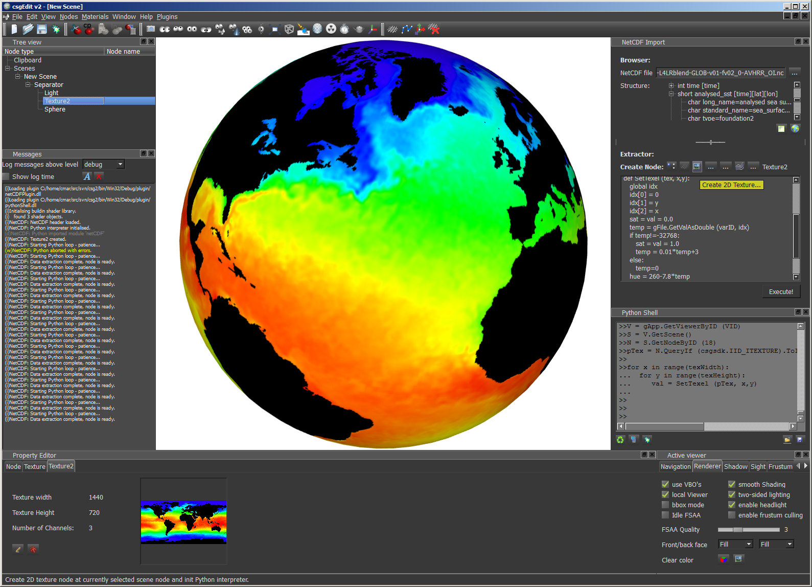 interpreting netCDF data to the given texture node. The texture node again