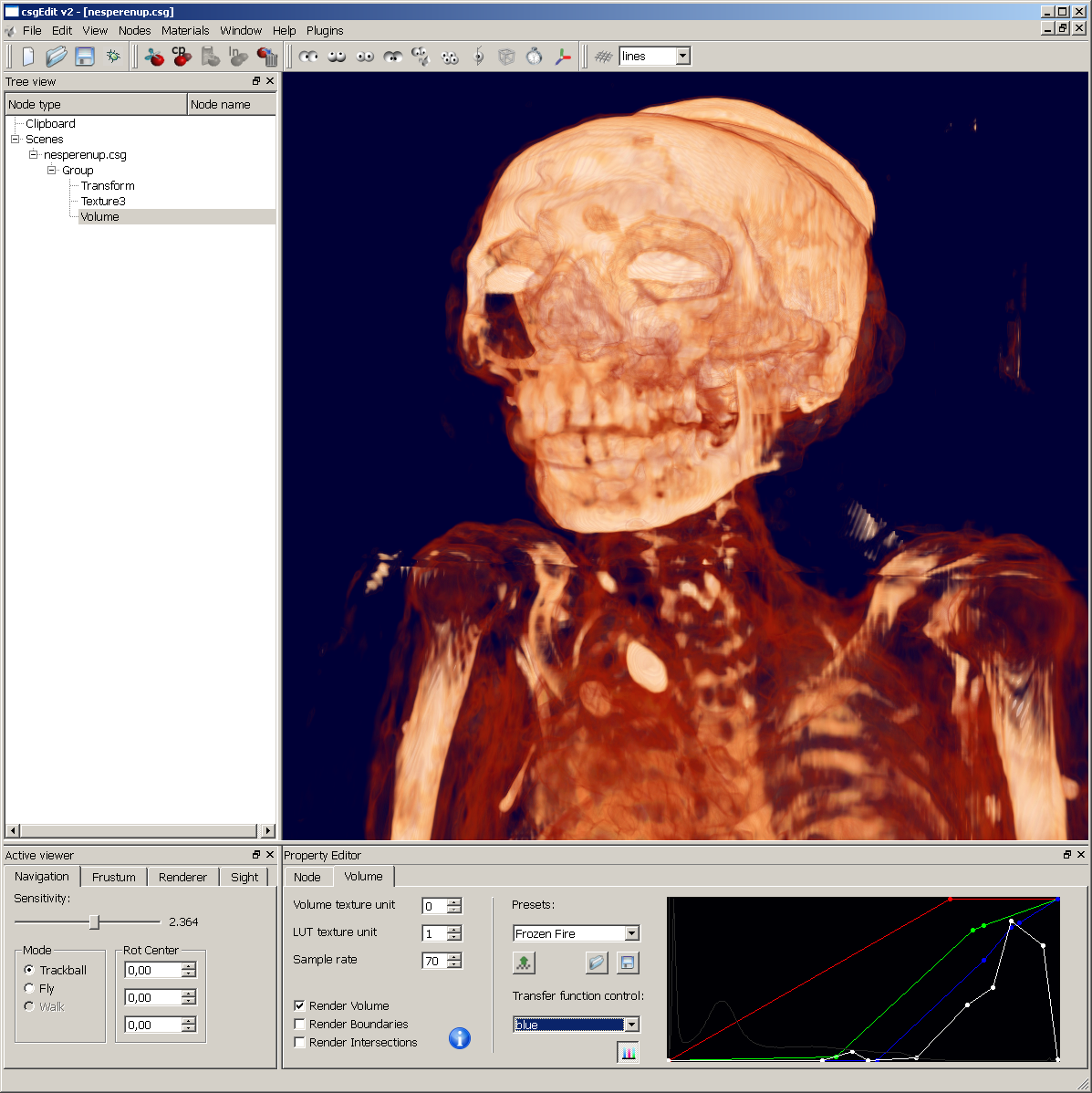Datasets can be explored easily in tsgEdit via transfer functions and