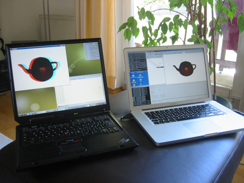 render slave displaying the same view in anaglyph stereo.