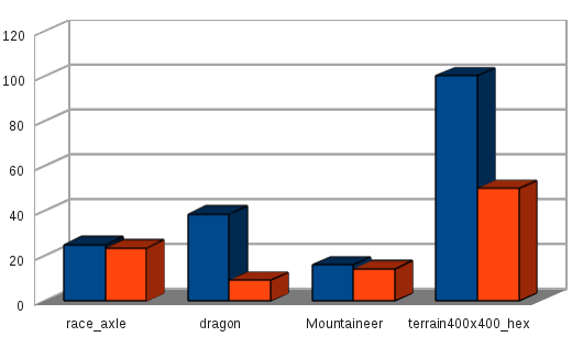 PerformanceIndexing vertex data may deliver great performance, because graphics drivers or even the hardware has a transformation cache, maintaining several already transformed vertices. However, these caches are small (something around 10-20 vertices). Thus, the application needs to be careful about when to send which index in order to take advantage of a vertex being found in the cache.Having the transformation cache in mind, the following recent benchmark result with tinySG came as a surprise: Unrolling the geometry of the Bismarck dataset increased the render performance by up to 4x for synthetic benchmark datasets, compared to indexed rendering using VBOs/IBOs. The calls changed from glMultiDrawElements() to glMultiDrawArrays(). Both AMD/Ati and nVidia hardware benefit from the change. The table above shows a performance comparison done on a 2.8GHz Core i7-860 with an AMD FirePro W8000 running Windows 7. For large meshes (terrain, dragon), performance gains by unrolling indices are huge. Real datasets (axle, mountaineer) still show a significant improvement, although other factors influence performance here as well, like 500-900 material state changes, traversal of 1500-4000 scenegraph nodes and binding of well over 1000 VBOs each frame.